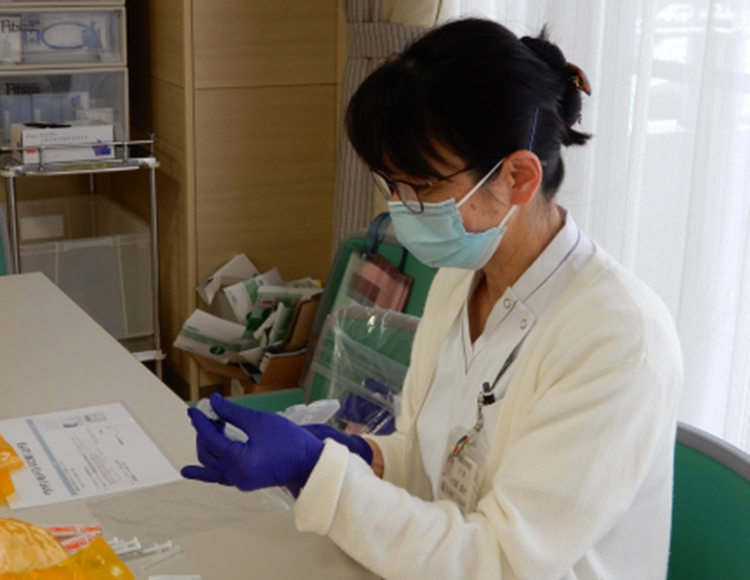 新型コロナウイルスのワクチンが4日、重点医療機関である当院に届きました。 1950人分のワクチンが配送業者によって運び込まれました。 引き渡しの際にも箱内の温度の確認など厳密なガイドラインが定められていました。当日は多くのマスコミも駆けつけ、その様子を見守りました。 その場で院長の会見が始まり、 「待望のワクチン。防護服で身を守っている職員の安全確保にも繋がればいい」と期待を込めて話していました。 翌5日より職員に対して接種を始めました。 陽性患者さんと直接接する機会のある医師や看護師などの優先職場から接種を行い、 10日間で職員の希望者約2,000名の1回目の接