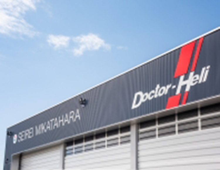 こんにちは。 ドクターヘリ格納庫工事の進捗報告です。 前回の視察時は、全ての柱が立ち(一般的に言う上棟にあたる工程)、ようやく格納庫の形が見えてきた状態でした。 それから1ヶ月、外壁材の施工も終わり完成間近の状態になってきました。この写真は格納庫の東側市道から撮影したものです。 「SEIREI MIKATAHARA」と「Doctor-Heli」の文字がちらりと確認できます。 フェンスの高さが絶妙で建物全体の様子を見ることはできませんが、存在感が感じられます。そしてこちらが外壁の施工を終えた格納庫の全体の様子です。 青空に映える濃紺の外壁が渋く、とても格好良いです。 手