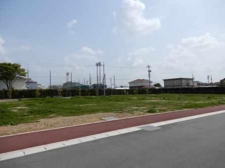 アリーナ前は緑がいっぱいに・・・映っていない左側から草刈りをしてくれていました。広いので大変です。