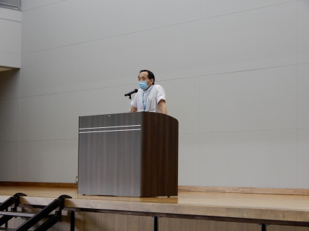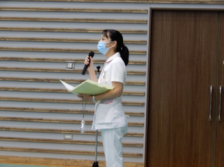 朝礼の後は、病院導入研修です。司会はI課長です。