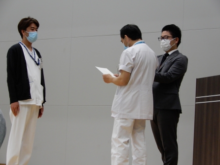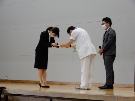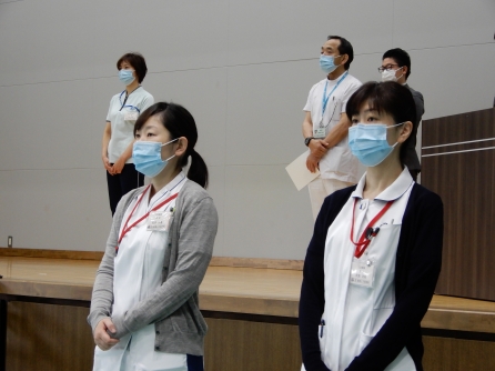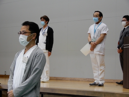 こちらは看護部の新任課長の3名。1名は壇上にいます。
