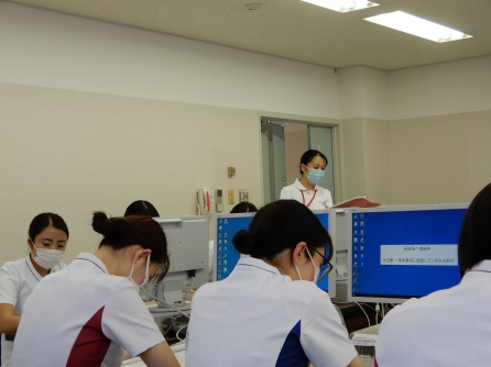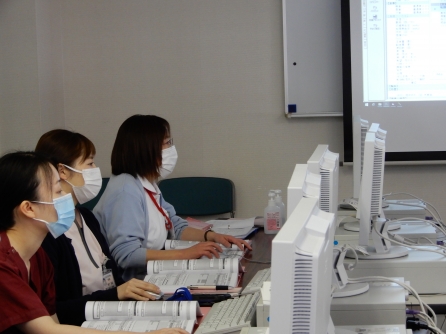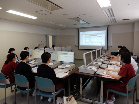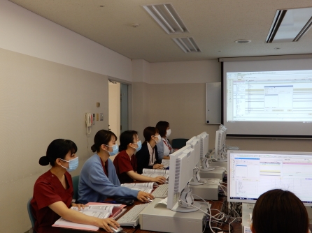 電子カルテ操作訓練 企画は看護部教育委員会・記録委員会・医療情報課。単に電子カルテの操作だけでなく個人情報の取り扱い、セキュリティのことなど学んでいきます。