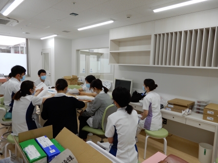 2日間でオリエンテーションを行いました。病棟が新設される事は滅多にありませんので、立ち上げに関わるスタッフは貴重な経験になると思います。病棟基準、目標、物品配置、新たな機器の学習会など行われました。この中でチーム作りもできてくると思います。細々したことを係長がすすめてくれているのも良いですね。
