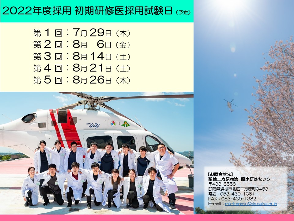 本日は『2022年度採用初期研修医 試験(予定)』のご案内です。