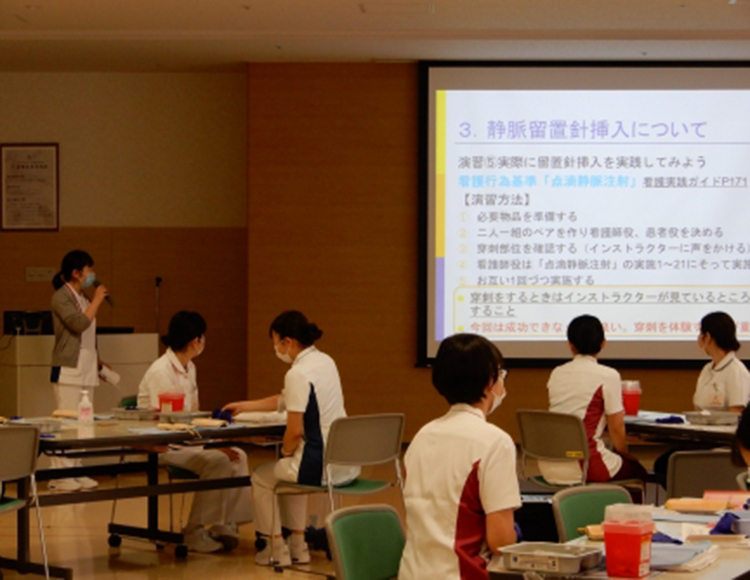 新人対象の研修が続きます。今日は静脈留置針の挿入。大事なのは安全な手技、手順、感染管理・・・なのは分かっていてもやはり「人に針を刺す」という侵襲のある手技は緊張感高まります。大きな課題に向かう顔つき、実にキラキラしていました(笑)。