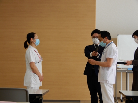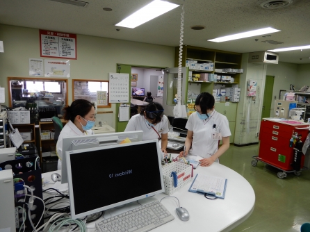 新人看護師達も1ヶ月が過ぎました。先輩と一緒に頑張っています!リーダーとのショートカンファレンスを聞いていましたが、先輩方の話は聞いているだけで勉強になります。