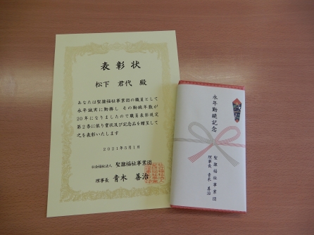 永年勤続表彰を受けました!