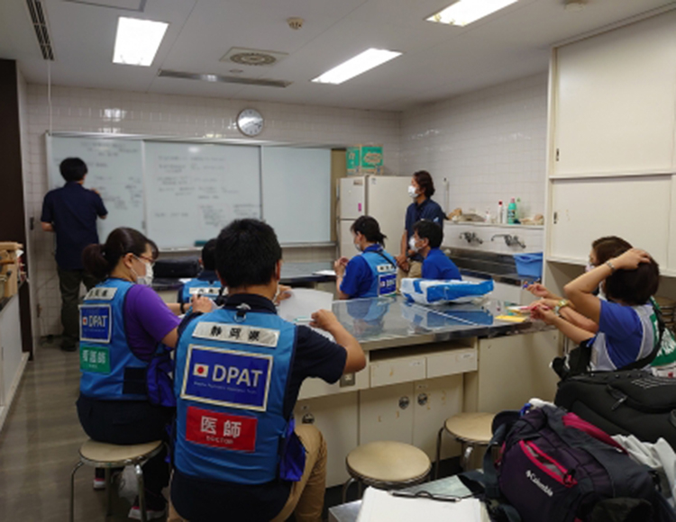 熱海市で起きた大規模な土石流災害に当院のDPAT隊とDMAT隊が出動しました。 当院は災害拠点病院として、精神科医療および精神保健活動の支援を行う専門的なチーム(DPAT)と、災害急性期に活動できる医療チーム「災害派遣医療チーム(DMAT)」を編成し様々な災害現場に赴いています。 今回の熱海市の土石流災害に際しても、7月9日~11日までの3日間をDPAT隊が、11日をDMAT隊が県の要請を受け出動しました。 DPAT隊は主に避難所に避難している住民の方々に対し心のケアや支援者支援のニーズを受けその調整を行いました。 またDMAT隊も現場で捜索活動を続ける方々に対し医療の提供