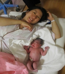 陣痛が来て入院されたものの、陣痛が増強せず促進剤を使っての出産となりました。促進剤を使用後はあっという間に出産になり元気な女の子が生まれました。