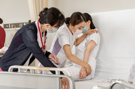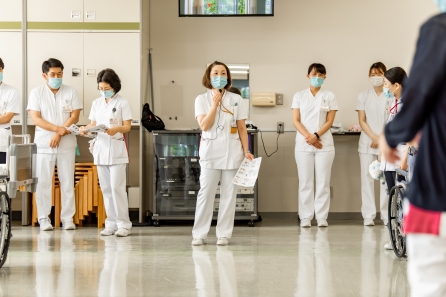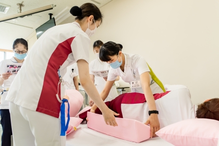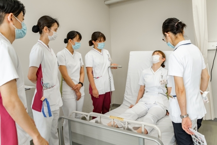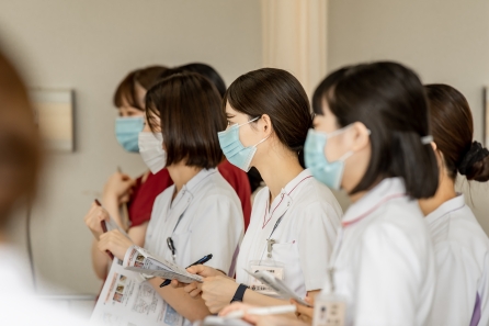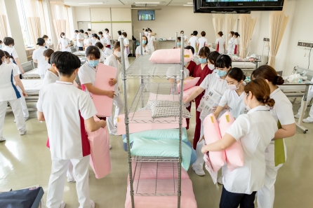 WOCのSさんが中心となって進めてくれます。座学は病院で行い、演習は聖隷クリストファー大学の実習室をお借りしました。研修環境としては最高です。