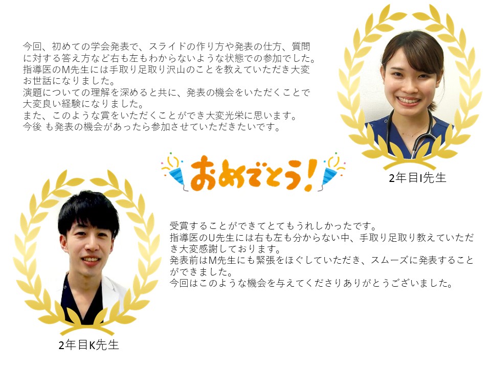 オンライン参加とはなりましたが、院外の学会経験は研修医達にとても良い経験になったことでしょう。