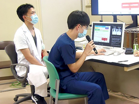 病理所見を丁寧に落ち着いて発表するK先生生(手前)
