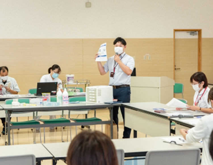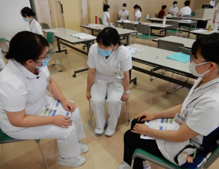 8月23日、24日の2日間、2班に分かれて「看護倫理・臨床倫理2」の研修が行われました。目標は「相手のニーズをとらえ、人としての尊厳を守るケアについて理解する、意思決定のプロセスを支援するための信頼関係やコミュニケーションスキルを理解する」の2点です。教育委員会と倫理委員会で開催し演習も多い研修となっていました。事前課題にしっかり取り組んでくると、理解が進む内容になっていましたが、研修生の皆さんいかがでしたでしょうか?明日からの実践で是非意識した行動をとっていただき、活かして欲しいと思います。
