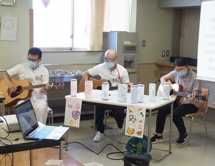 今回はC6病棟のI課長からの紹介です。 ↓↓↓ 今年も夏の恒例行事、あたまほぐしの会「納涼祭」が行われました。 看護師・公認心理師によるギター演奏と患者さんによるトーンチャイムで「涙そうそう」を歌いました。 先週作成した灯籠を飾り夏祭りらしい雰囲気でした。 ビンゴは夏の風物詩ビンゴ。自分で枠に書き込みます。 雑学クイズは夏がテーマ。Q:蚊の主食は? A:花の蜜!! 最後はかき氷の代わりにガリガリ君をみんなで食べました。 楽しい時間を過ごすことができました。