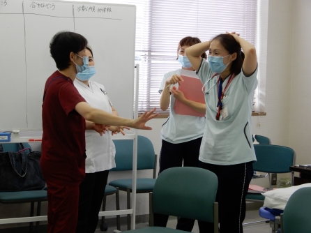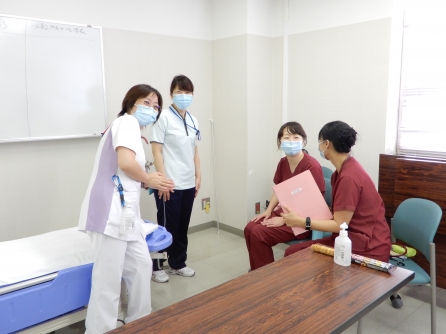 金曜日の午後は特定行為研修の演習を行っている事が多く、この日もM医師を講師にフィジカルアセスメントの演習を行っていました。M医師から「皆が熱心なのでこちらも楽しくやっています」と言ってもらいました。共通科目は終盤にかかっており、これから実習を経て、区分別科目に入っていきます。頑張れ~!!