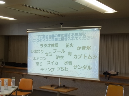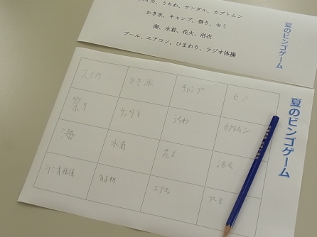 ビンゴは夏の風物詩ビンゴ。自分で枠に書き込みます。