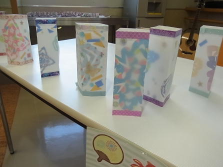 先週作成した灯籠を飾り夏祭りらしい雰囲気でした。