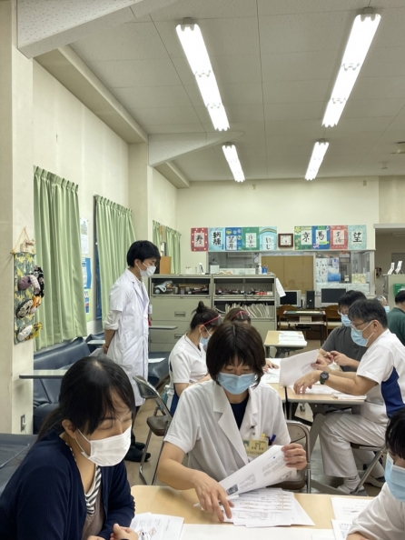9月は様々なところで防災訓練が実施されたのではないでしょうか。当院も9月17日の夕方、地震総合訓練を行いました。今年は発災後24時間が経過し、そろそろし患者さんが病院に来院し始めている状況です。各職場、現在の入院患者さんのベッド移動をして発熱者やコロナ陽性患者対応をイメージしたゾーンニングをし、受け入れ患者数を本部に報告する、本部は病院としての方針を決定することが主な課題でした。その他、各職場、各救護所では自分達でBCPに基づく訓練を実施していました。
