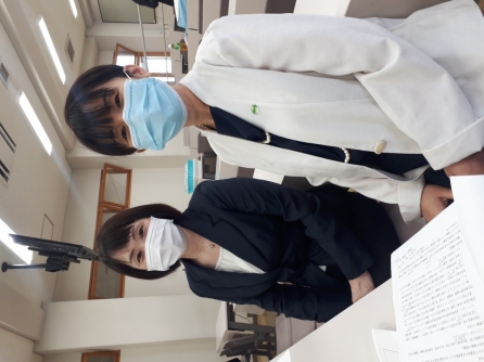 COVID-19対策実践報告会 4名の演者がそれぞれの立場から発表されました。当院からは重症患者看護専門看護師のKさんが重症病棟立ち上げ時の内容を話してくれました。聖浜のCNSのTさんとのツーショット。
