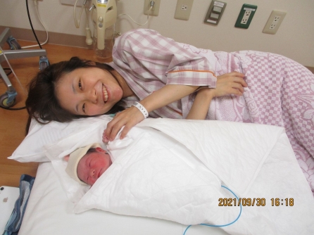 入院後赤ちゃんが早く産まれてきたかったのかママのお尻をグイグイ押していましたね(^o^) 和痛の注射が良く効いてニコニコしながらたんぽぽまで歩きました!さすがです(^^)v