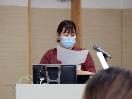 特定・認定看護師のSさん。うんうん、と皆がうなずく、さすが分かりやすい説明です。