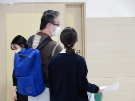 あちらもこちらも。こちらは発表前の研修生に係長が声をかけています。職場の支援、本当にありがとうございます。