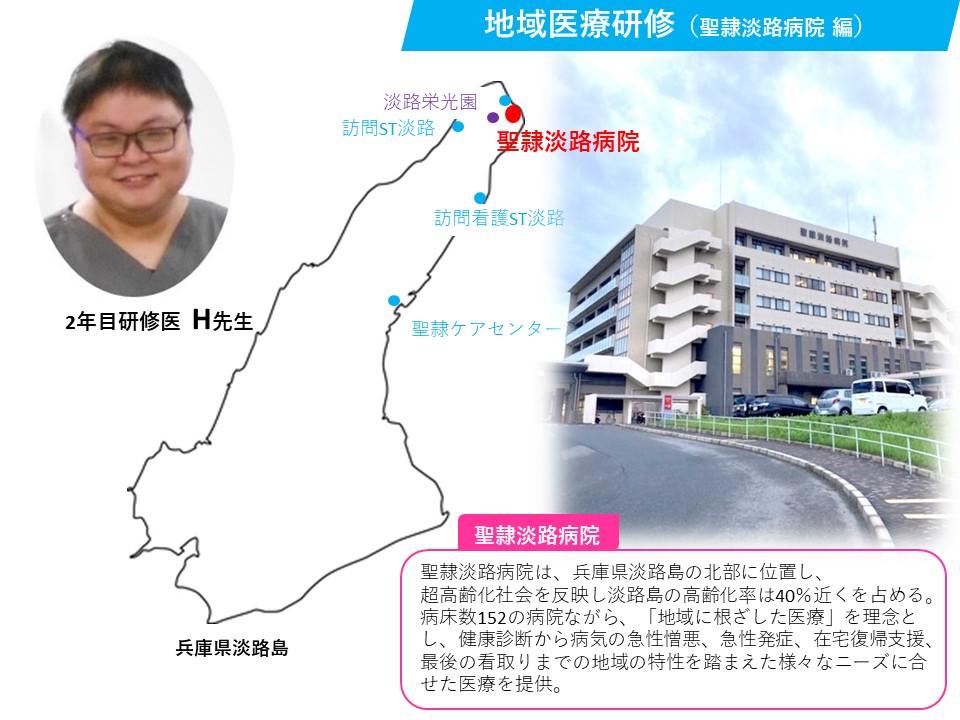 以前の研修医ブログで「浜松市国民健康保険 佐久間病院」「医療法人徳洲会 沖永良部徳洲会病院」の研修についてアップさせて頂きましたので、今回は9月の2年目研修医H先生の「聖隷淡路病院」研修報告をお届けします!!