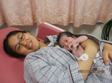 入院後順調にお産が進み、ご主人もタイミング良く立ち会いができて良かったです(*^_^*)最後まで冷静なお産でした!
