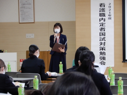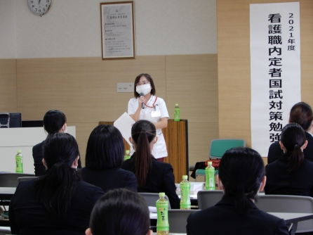 11月13日の土曜日、2022年度4月採用の内定者むけに国家試験対策会を行いました。講師は毎年お世話になっているフラピエかおり先生をお招きしたった90分ですが、国試の対策、これから3ヶ月でどのように試験勉強を進めていくかなどみっちり行ってもらいました。コロナ禍で一緒に勉強するとか、実習中に患者像を捉える時間が少ない中、とても苦労しているのではないかと思います。無事試験を突破して一緒に働けるのを楽しみにしています。目標は試験合格ではなく、その先にある、看護師として患者さんのためにどのような看護をしたいのか、専門職としての社会貢献です。みんな頑張れ!頑張れ!
