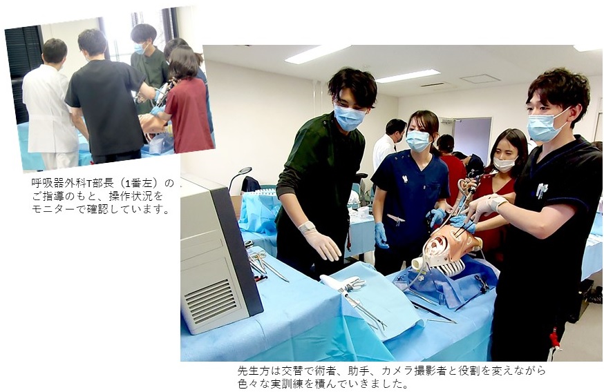 こちらは呼吸器外科の先生方が胸腔鏡下による手術手技トレーニング中の様子☆