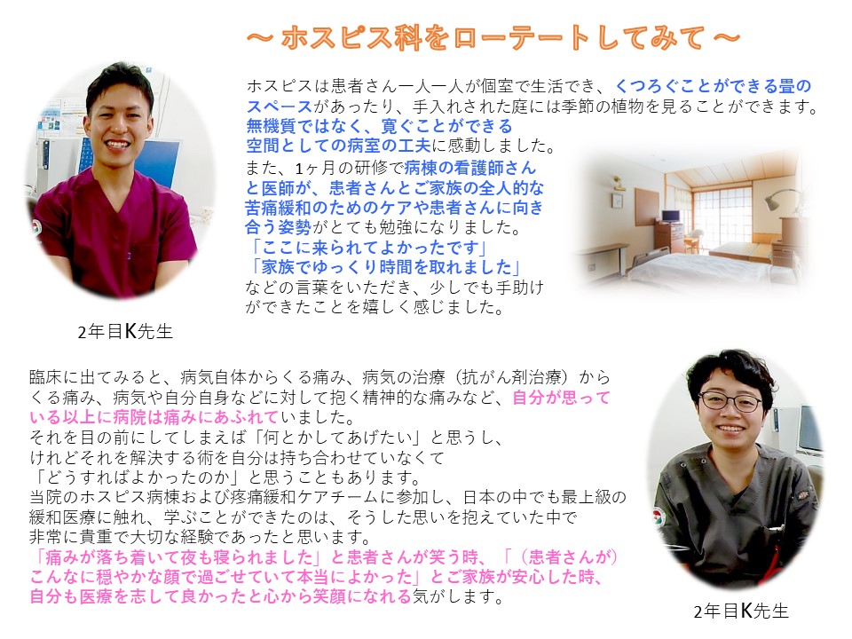 ホスピス科I部長はじめローテートした研修医達の声を聞いてみて下さい♪♪
