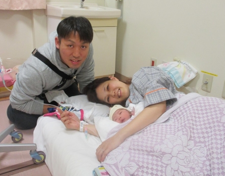 初産婦さんでしたが、入院してからは順調に進んで6㎝でたんぽぽへ移動。くじけそうになっても助産師の励ましに、しっかり返事をしてくれて、最後まで頑張りましたね。パパのサポートもバッチリでした。