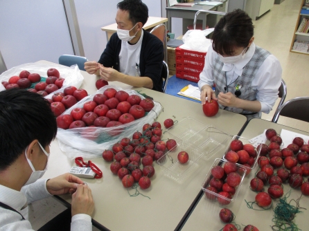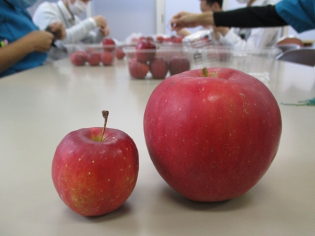 右が普通サイズ、左が小さい姫りんご