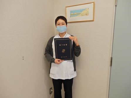 老人看護専門看護師のSさん、博士後期課程を修了しました。当院では看護学博士第1号です!高齢者の看護だけでなく学術的にも活躍してくれると期待しています。おめでとうございます!!