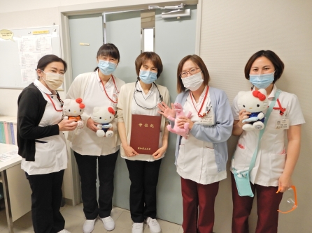 A5病棟係長のTさん、呼吸器疾患看護認定看護師の教育課程を修了しました。B課程ですので特定行為研修も終えてきました。おめでとうございます!!