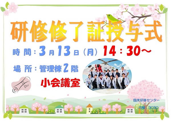 この2年間の研修が皆さんのこれからを支える礎となるはずです!!4月からのご活躍を心よりお祈りしております♪