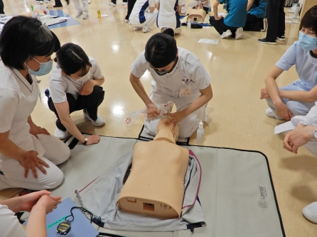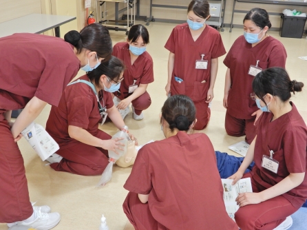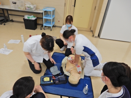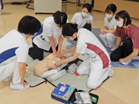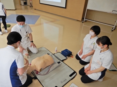 BLSは全ての職種が受講します。全員修了証が得られるまでやってもらいます。