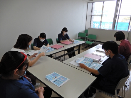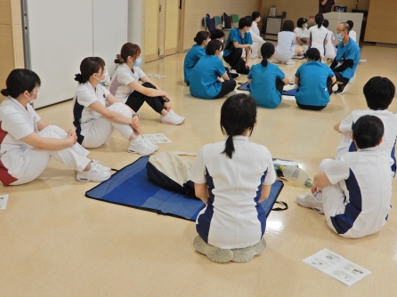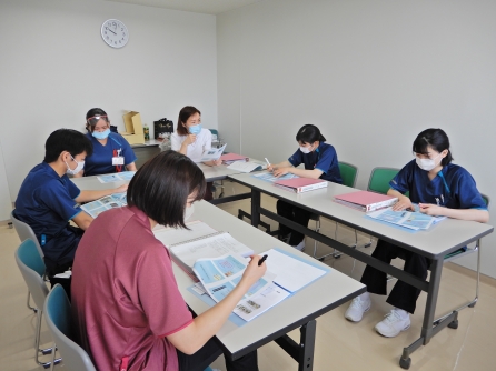 隣の部屋では看護補助者の研修が行われています。今年度は4名の新採用がありました。補助者の研修は教育委員会と看護補助者の職場リーダーが入り行われます。段々教育が充実してきました。