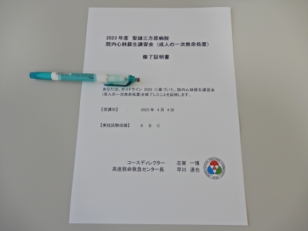 今年度も無事、全員BLS修了証明書が出ました。おめでとう!