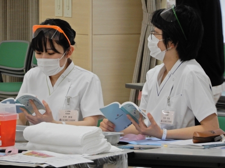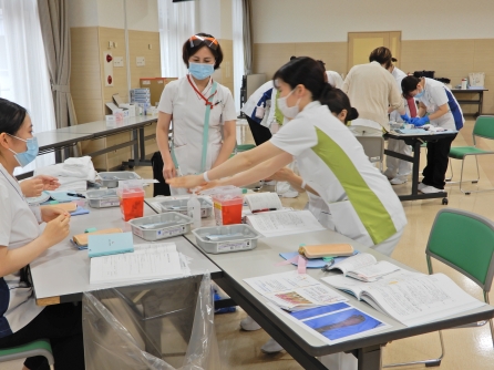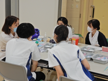 実践ガイドにある看護行為基準に沿って手順の確認です。安全管理、感染管理、1つの行為でも気をつけなければいけないことがたくさんあります。