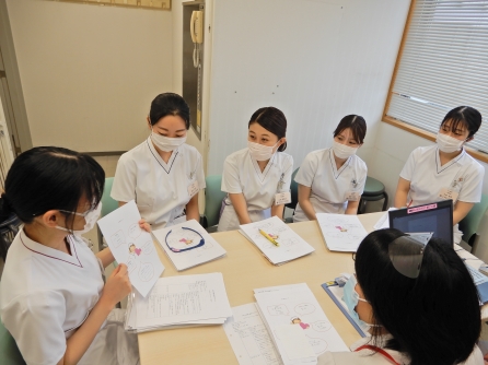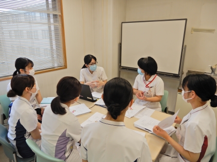 教育担当係長と新人教育担当者のお二人。新人看護師5人をよろしくお願いします。