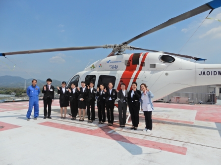 風が強かったのでヘリは出動できない状態でした。天気は良かったので記念写真タイムはばっちり!