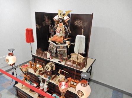 病院玄関まわりの飾りは五月人形になっています。