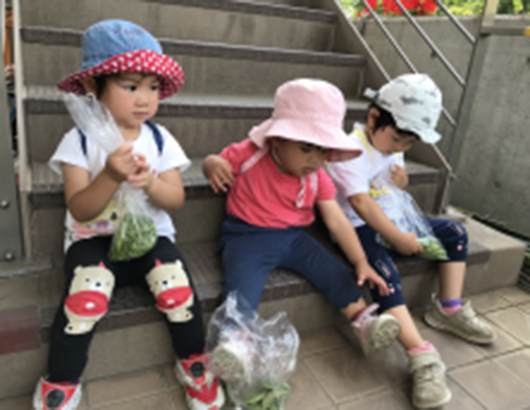 最近のさくら保育園の様子です。 今年はスナップエンドウを育ててみました。初挑戦でしたが、長い期間収穫ができて、お土産に持ち帰るのを楽しみにする園児もいました。 いよいよ収穫時期も終わりになったので、畑からつるを抜いて、みんなで最後の収穫「お豆探し大会」となりました。つるの中のお豆を一生懸命探して、最後のお土産を持ち帰りました。 来月はいよいよジャガイモ掘りです。
