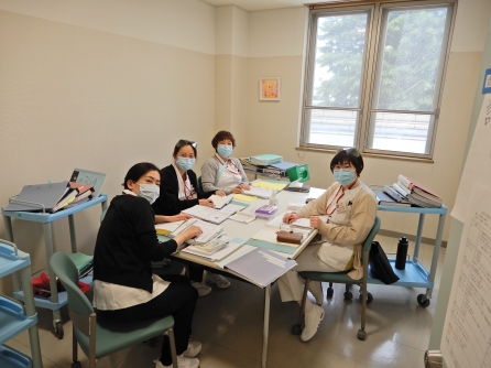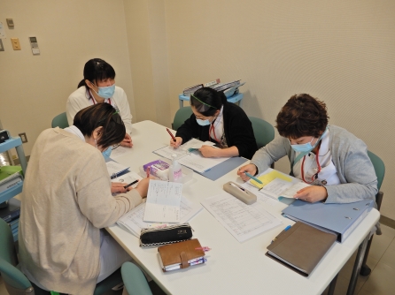 昨年度、訪問看護ステーション細江に出向していた外来係長のKさんが、看護課長会で出向報告をしました。何と訪問看護ステーション細江からも3名参加してくれたので短い時間ですが充実した時間を持つことができました。益々の地域連携、これからがとっても楽しみです。