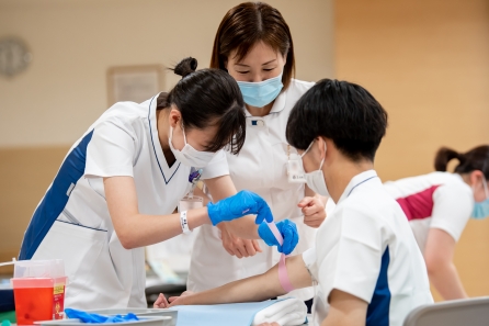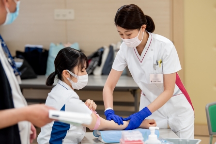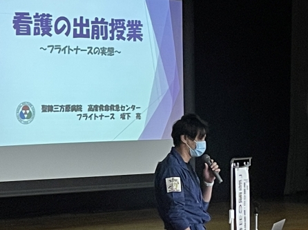 高校生に向けての出前授業はフライトナースの坂下さんが行きました。フライトナースの役割や業務内容、大切にしていることなど伝え、高校生の皆さんが一生懸命メモをとる姿が印象的だったと江上次長談。当院でも夏に近隣地域の高校生など受け入れるふれあい看護体験行います。お待ちしています。