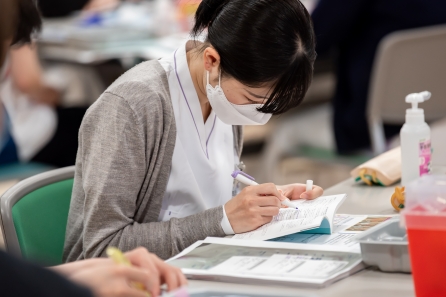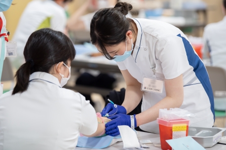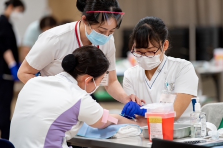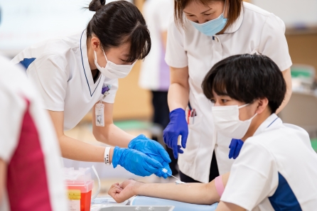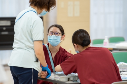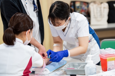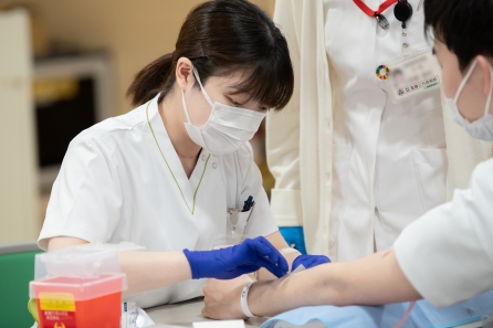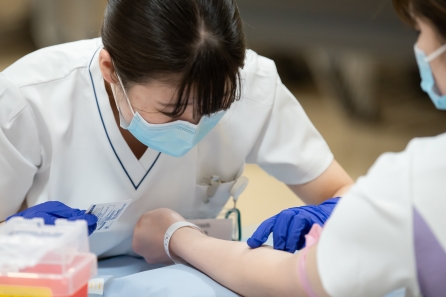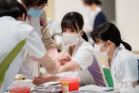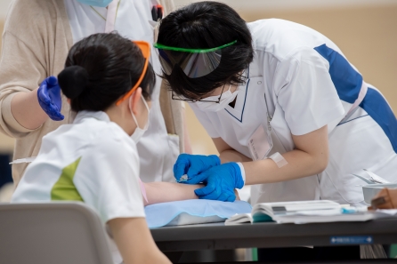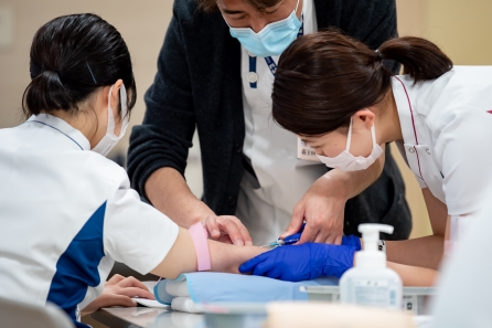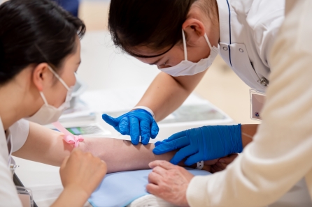 6人の目が向けられている刺入部!刺される側とも最終確認?