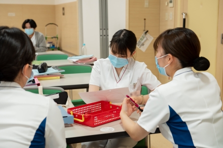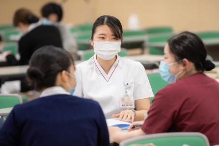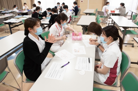 自分の看護を言語化し看護の意味や価値に気づく、他者の看護の語りを傾聴できる、新人同士のコミュニケーションを図るの3つの目標をもち、1年目看護師対象のリフレクション研修を年4回実施します。5月初旬に第1回目が行われました。5月中旬から下旬にかけて採用2ヶ月面接も行われています。今年の新人看護師助産師達の様子はどうでしょうか(^^)