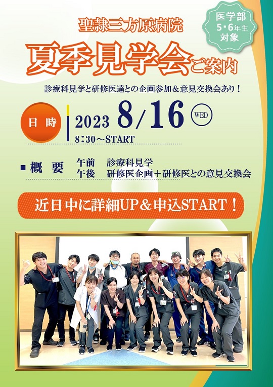 今年も『聖隷三方原病院 夏季見学会』を開催する予定です。