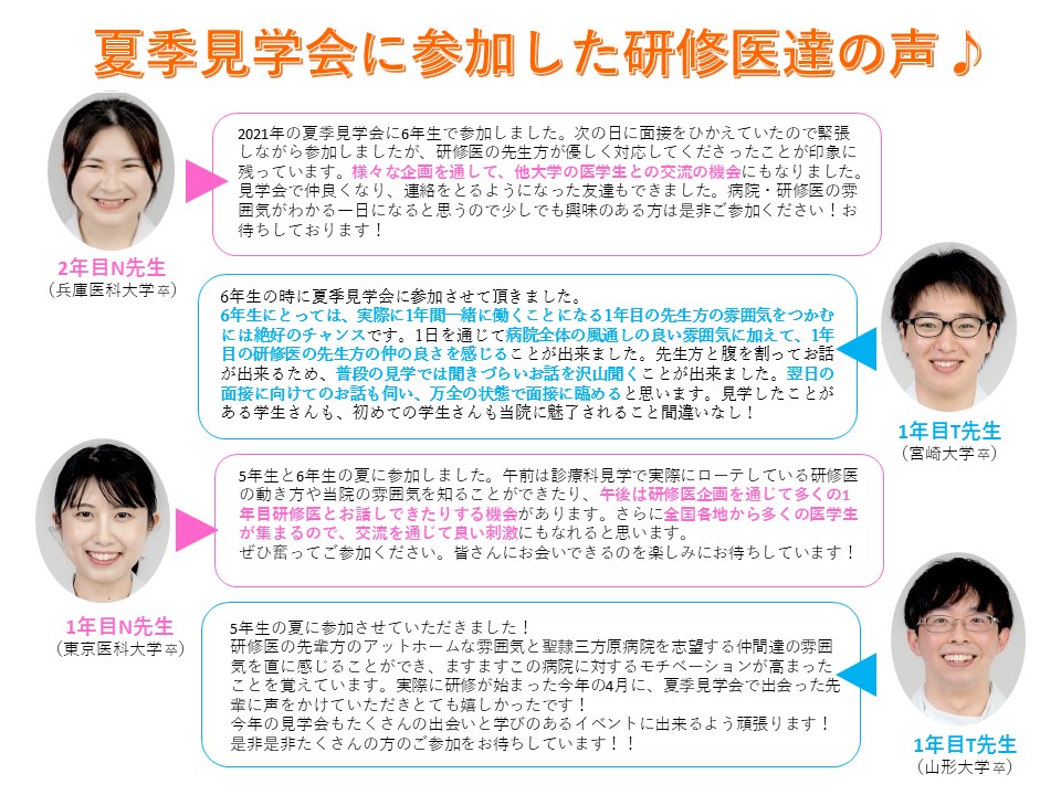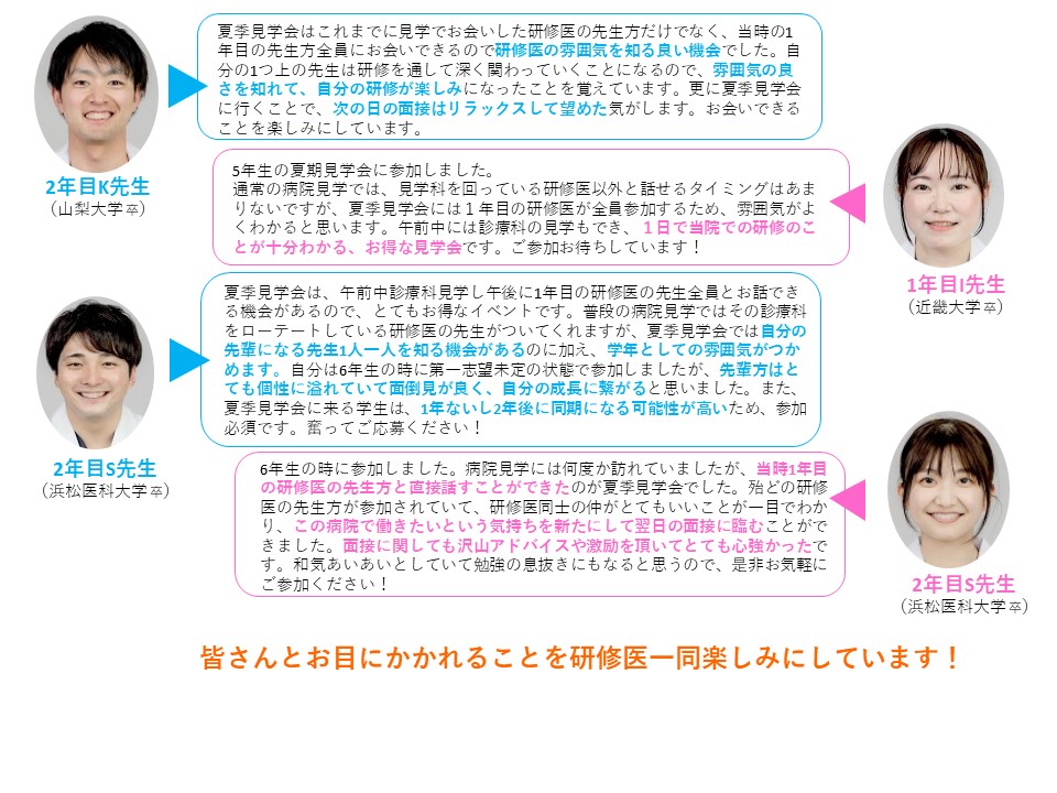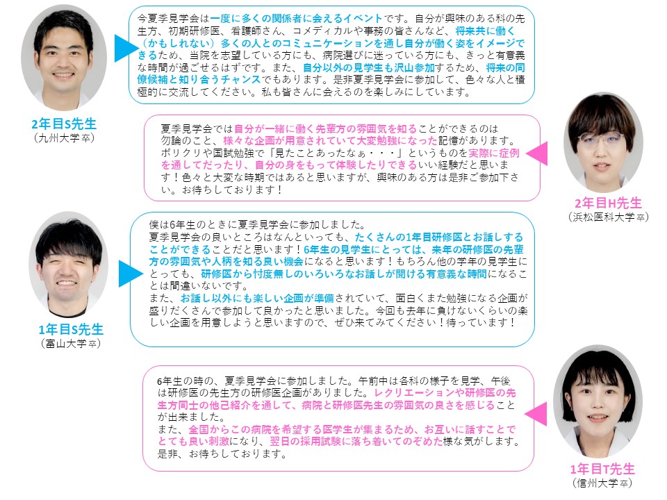 過去の夏季見学会に参加したことのある当院の研修医達の声も是非参考にしてくだいね♪♪